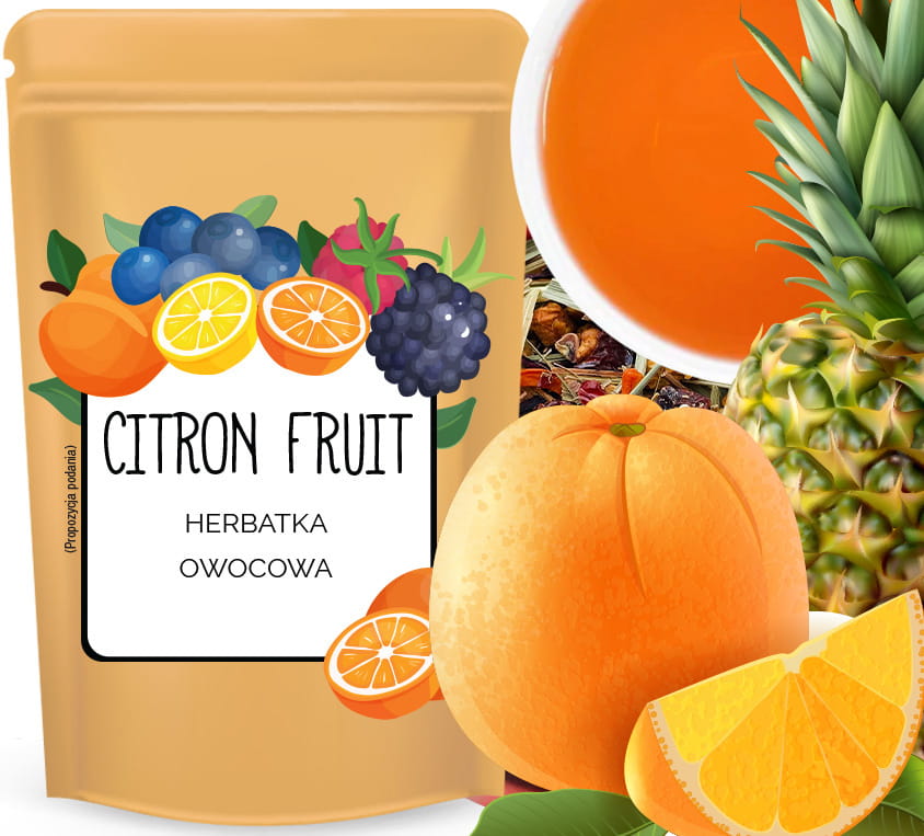 Citron Fruit zawiera wyjątkowe składniki, takie jak jabłko, rodzynki, owoc dzikiej róży, hibiskus, suszona pomarańcza, ananas kandyzowany oraz skórka pomarańczy, które łączą się w harmonijną całość.