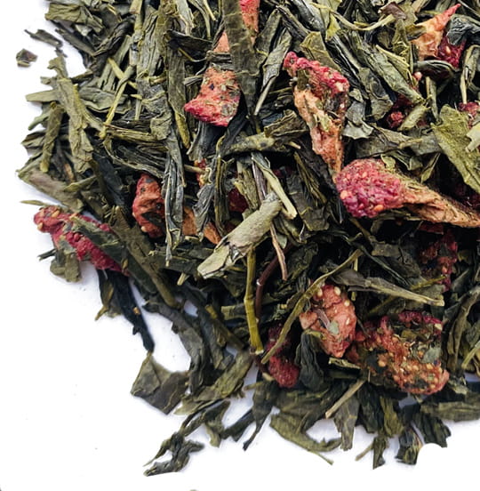 Zrównoważona nuta zielonej herbaty Sencha doskonale komponuje się z intensywnym smakiem truskawek, tworząc niezapomnianą harmonię smaku i aromatu.